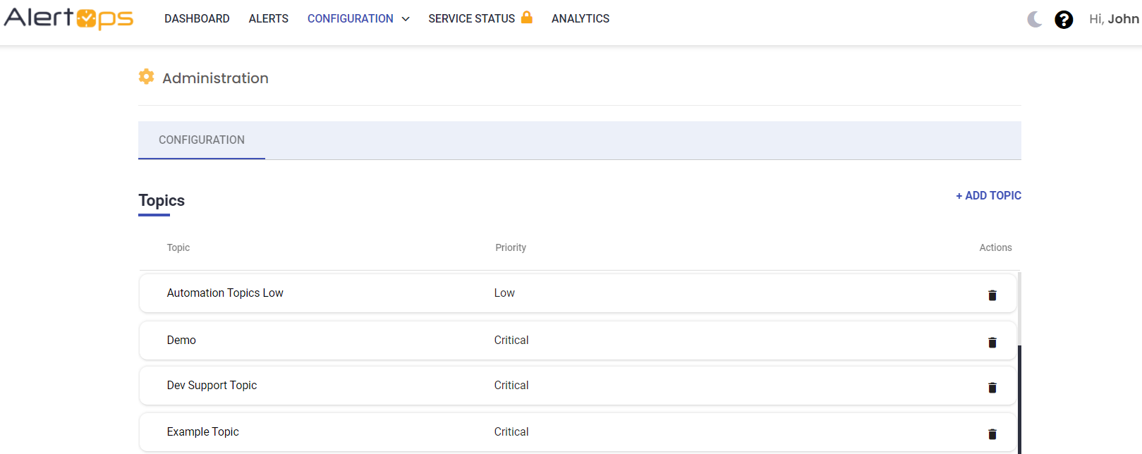- Navigate to Configuration à Administration à Topics