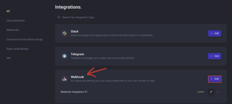 - Select the 'ADD API INTEGRATION' button, you should now be on the API Integration Detail page. Select UptimeRobot from the pre-built Integration Templates.