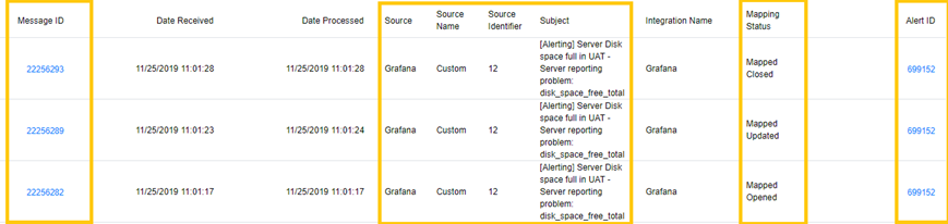 Incoming alerts that have been successfully process will have a status of Mapped. |