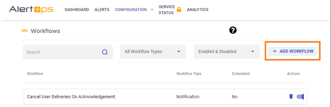 Workflows are auxiliary actions in your Escalation Policy which are triggered based on defined conditions. AlertOps comes with a number of pre-built Workflows. Additionally, you may create new Workflows and edit existing ones. Workflows are only available for Enterprise Package and Custom Package clients.