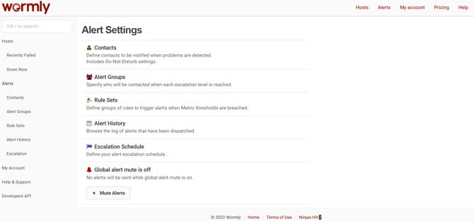 - In your Wormly interface, select 'Alerts' in the top right menu.